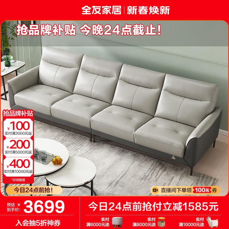 全友家居 真皮沙发 现代简约小户型头层牛皮轻奢直排式沙发客厅102710价格:5284.29元!