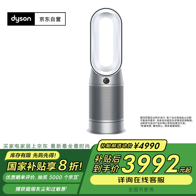 戴森DYSON HP07 除菌除甲醛空气净化器 兼具暖风扇功能 整屋循环净化过敏原 滤除花粉 宠物毛发 银白色价格:4990.00元!