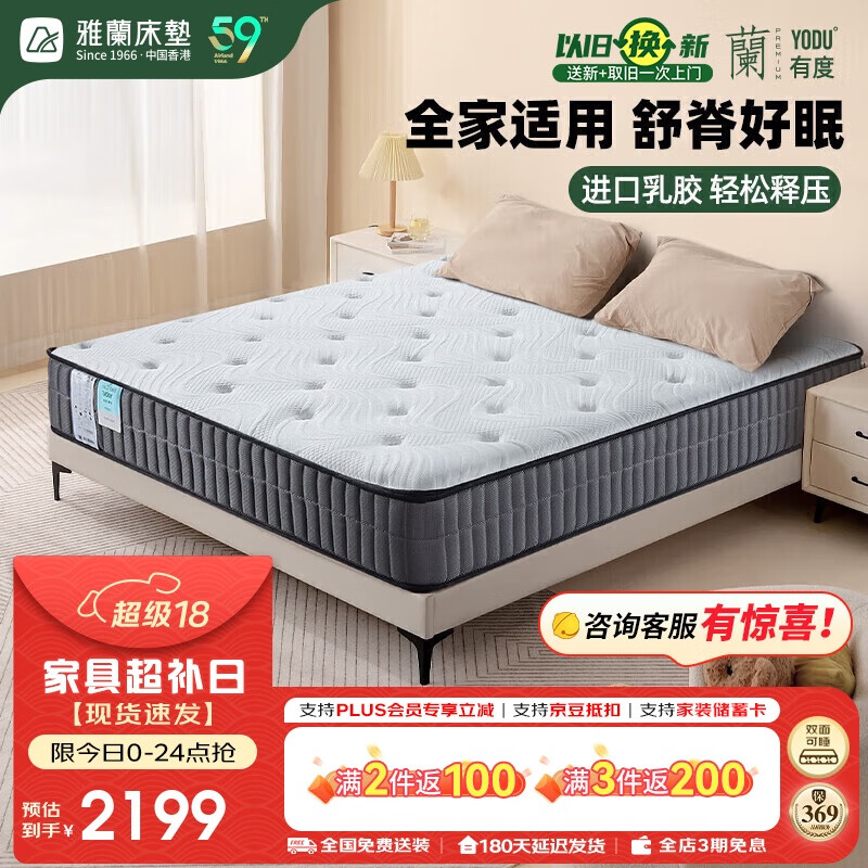 雅兰(AIRLAND)乳胶床垫偏硬卧室贴身舒脊双面可用床垫 有度.护脊版 1.8*2米价格:2599.00元!