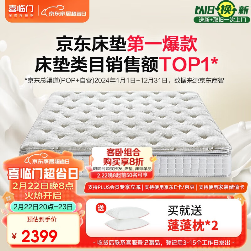 喜临门床垫 2cm高纯乳胶独袋弹簧床垫 黄麻床垫 白骑士plus 1.35x2米价格:2499.00元!