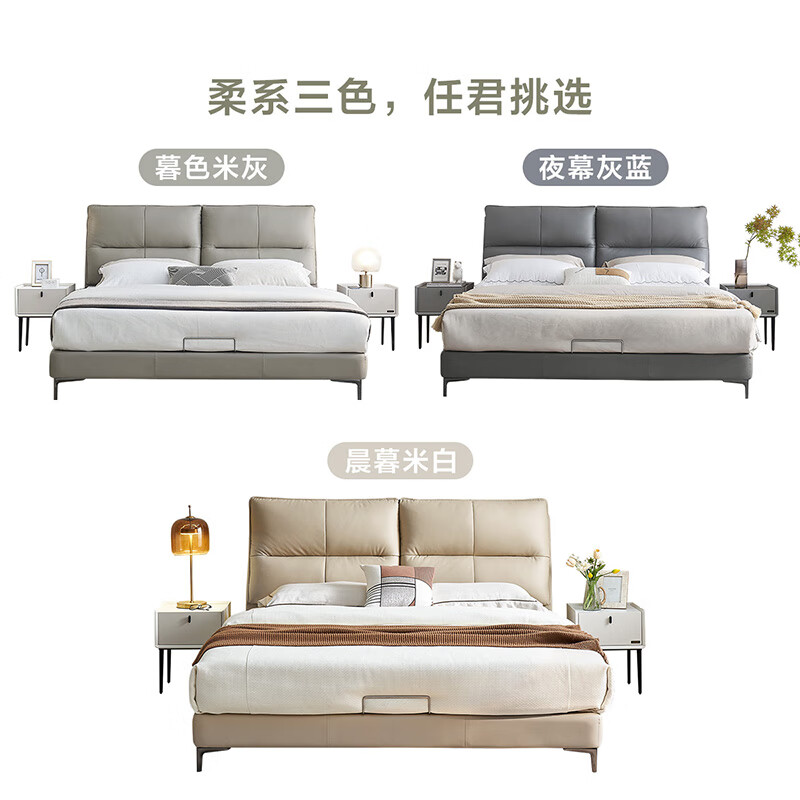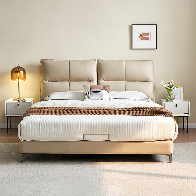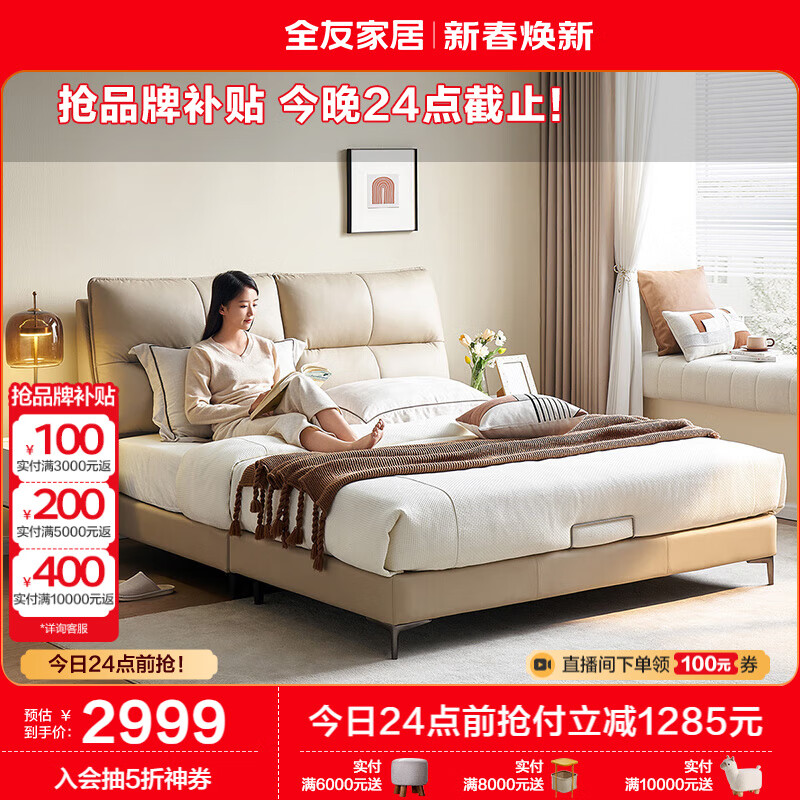 全友家居 现代简约头层牛皮艺床1.8x2米主卧室真皮软包双人大床116019价格:4284.29元!