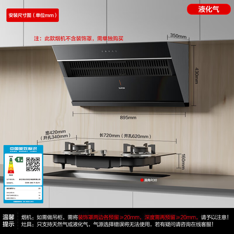 苏泊尔(SUPOR)抽油烟机家用 22立方大风量450Pa风压 侧吸式广域拢烟经典百搭 燃气灶套装DJ11+DB19S液化气价格:1395.00元!