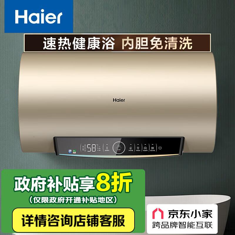 海尔(Haier)【JC9】80升电热水器 3.3KW/2.2KW变频速热 净水洗 内胆免清洗 EC8002-JC9U1 *价格:2419.00元!