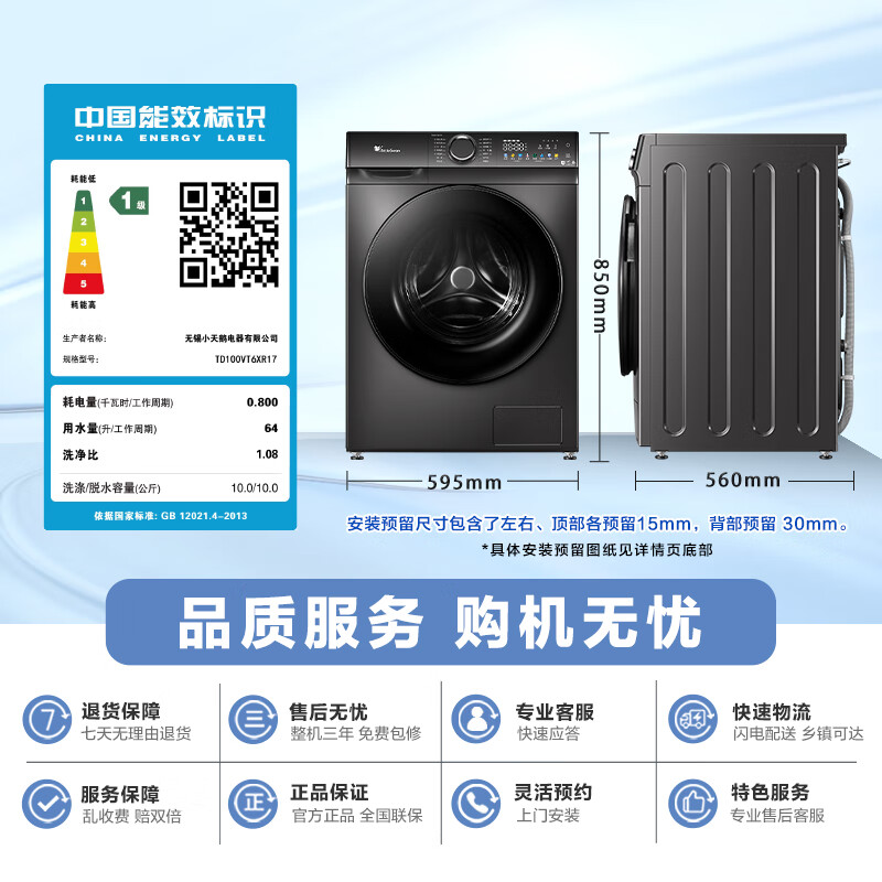 小天鹅TD100VT6XR17配置参数: