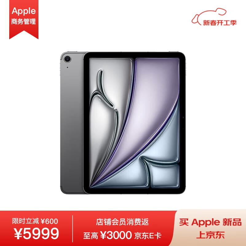 Apple iPad Air 11 英寸 M2芯片 2024年新款平板电脑256GB 蜂窝版/MUY13CH/A 深空灰色*企业专享价格:6599.00元!