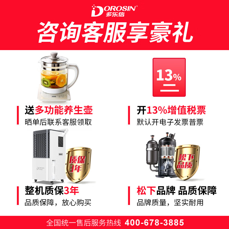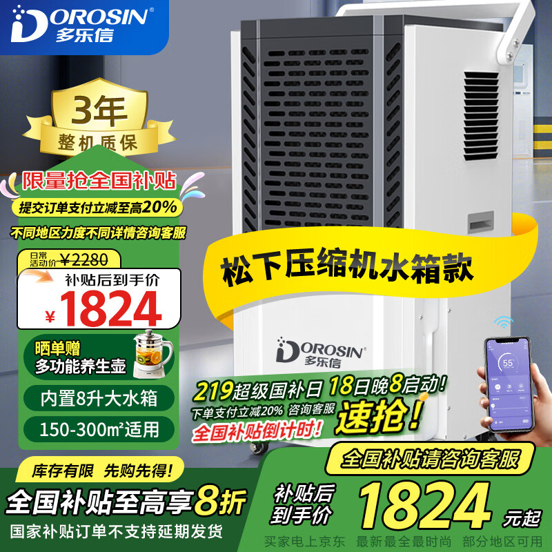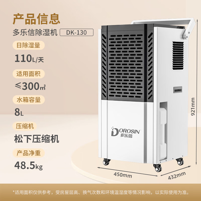 多乐信(DOROSIN)除湿机/抽湿机100-300平方米 APP手机遥控 别墅地下室车间仓库大功率商用工业除湿器大水箱DK-130价格:2280.00元!