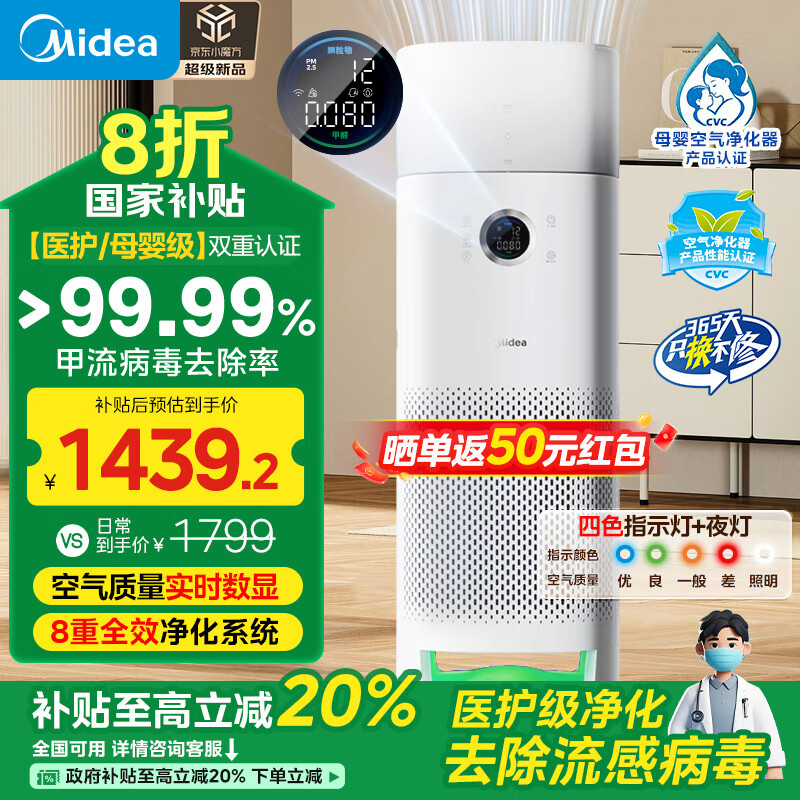 美的(Midea)【甲醛数显】空气净化器加湿一体除甲醛甲苯/除烟味异味过敏源/宠物吸猫毛空气消毒机森林家Ultra价格:1799.00元!