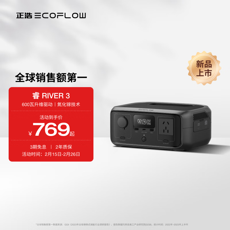 ECOFLOW正浩【宿舍好物】睿3快充移动户外电源220V 76800mAh宿舍便携开黑停电应急备用笔记本大容量充电宝价格:769.00元!