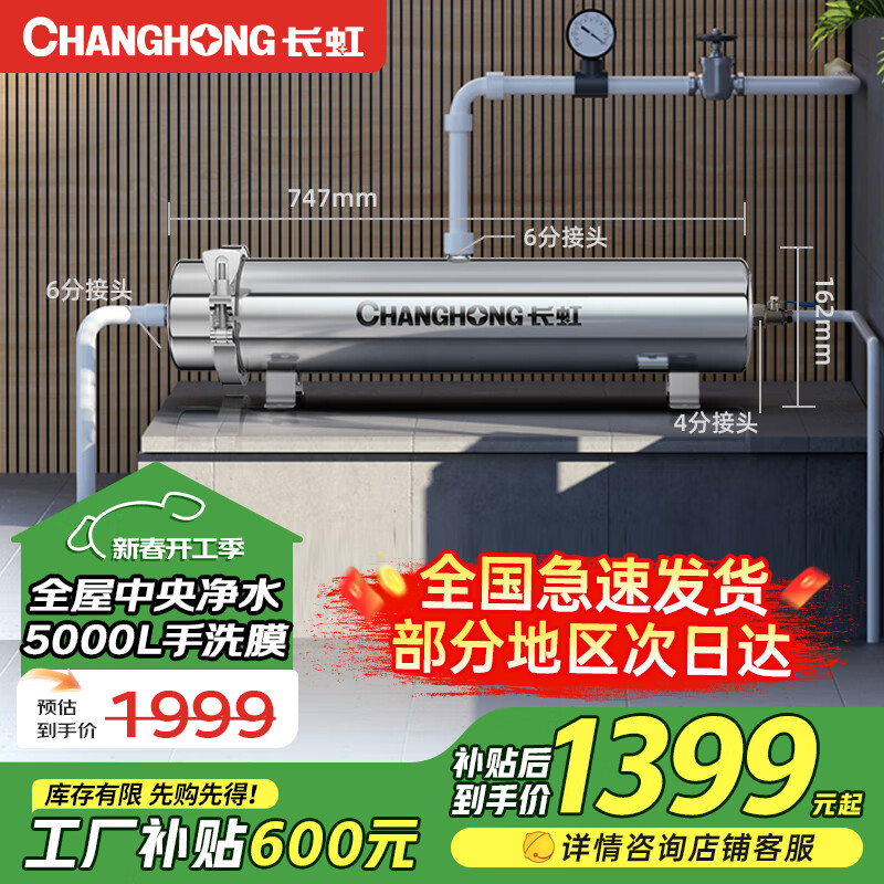 长虹(CHANGHONG)全屋中央管道净水器家用直饮超滤净水机前置农村井水别墅自来水过滤器大流量商用 【5000L大流量】满足全屋过滤价格:1999.00元!