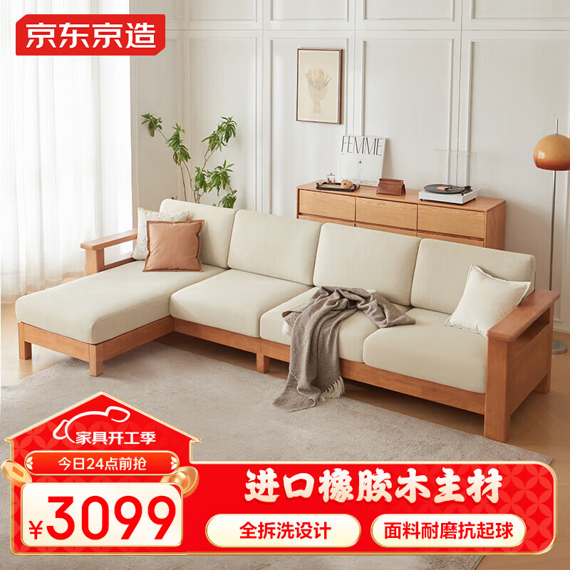 京东京造家居彼岸布艺沙发 实木软包现代客厅大户型 四人位+贵妃价格:3399.00元!