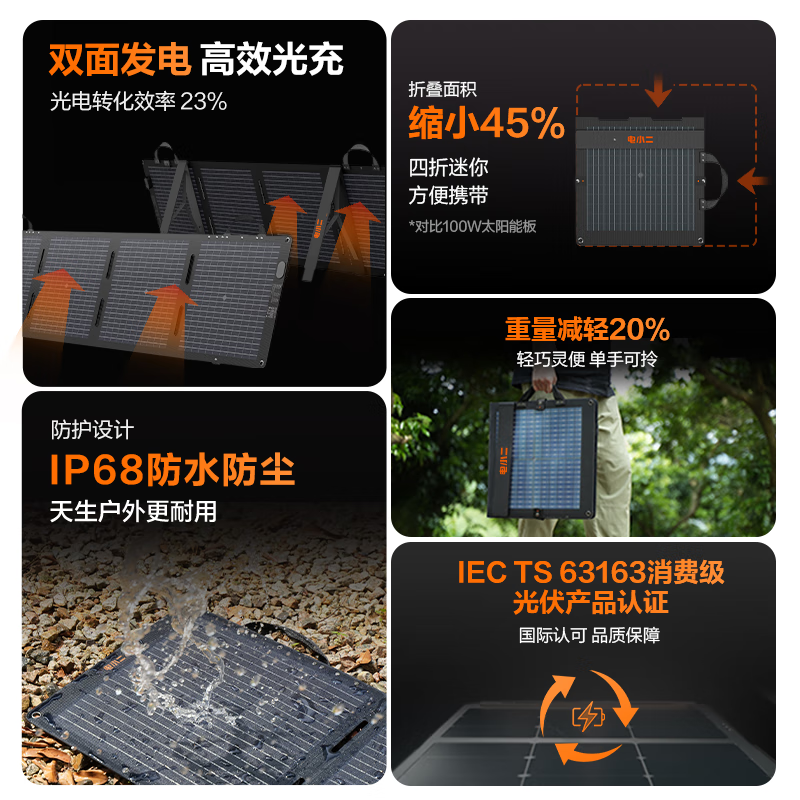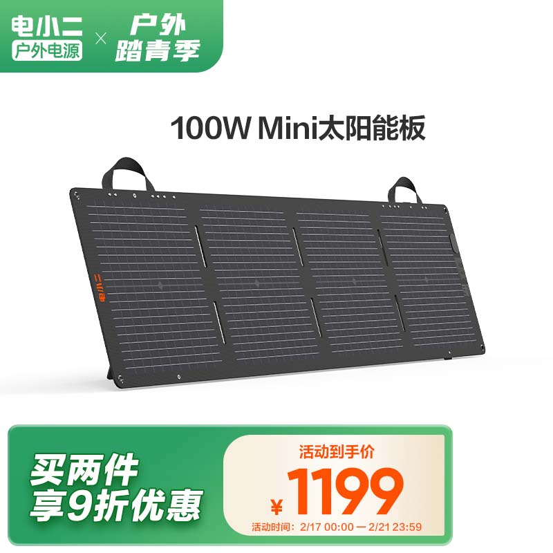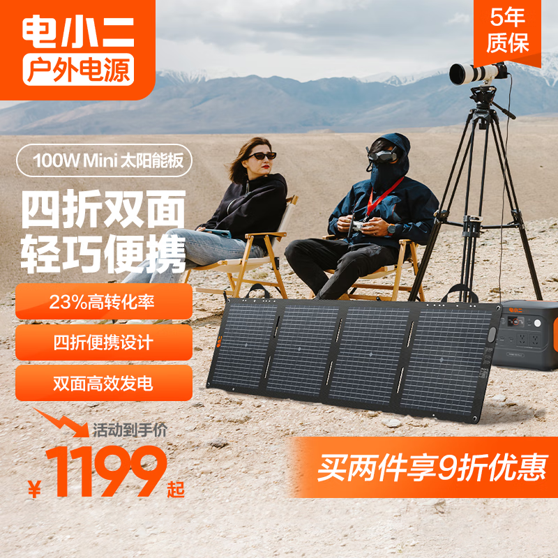 电小二100W太阳能充电板 折叠便携单晶硅光伏发电家用露营搭配户外电源使用 100W太阳能板升级款价格:1199.00元!