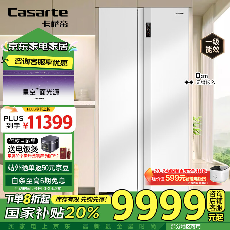 卡萨帝(Casarte)星空630升对开门零嵌入式双开门双系统一级能效家用【补贴】冰箱BCD-630WGCSSM7WKU1价格:11999.00元!