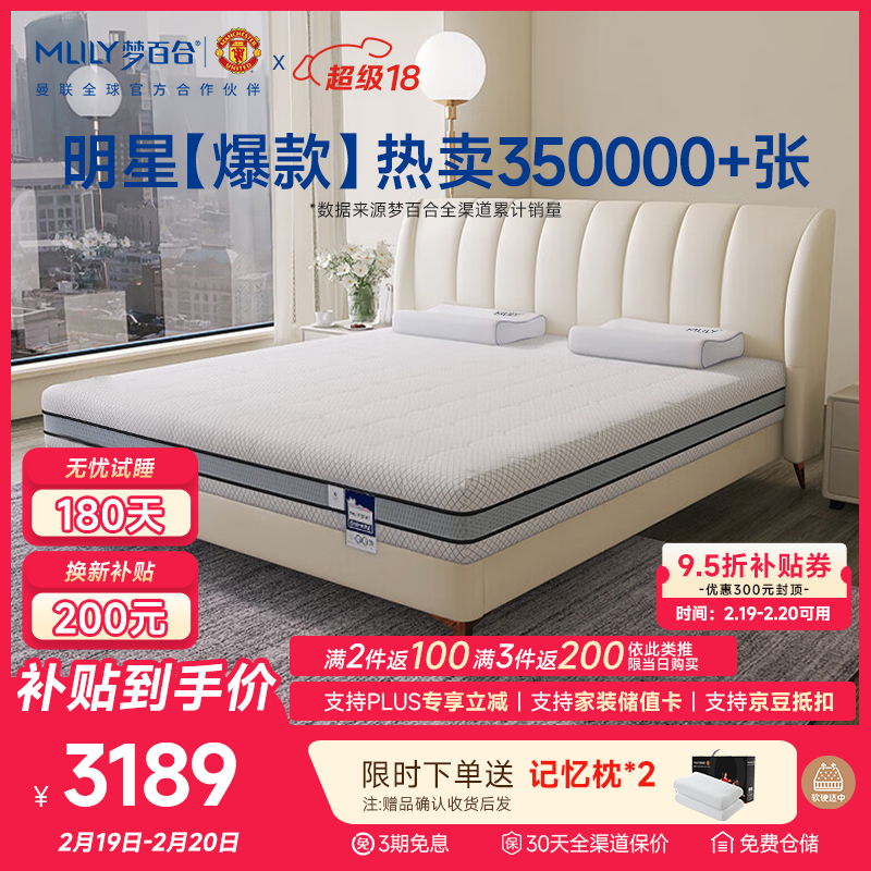梦百合【爆款】朗怡零压记忆棉弹簧床垫软硬两用双人席梦思1.5×2米价格:3889.10元!