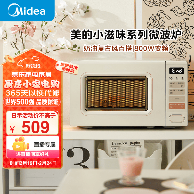 美的(Midea)小滋味系列微波炉变频家用奶油风百搭复古转盘式一级能效微波炉以旧换新20L(M2H2)价格:509.00元!