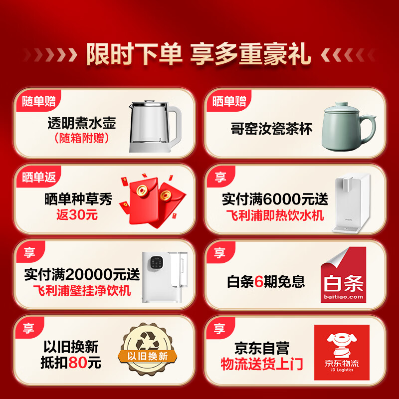 2、飞利浦这款茶吧机颜值高功能全可以两边一起烧水客服也很给力帮忙催货终于搬家前一天送到了很满意