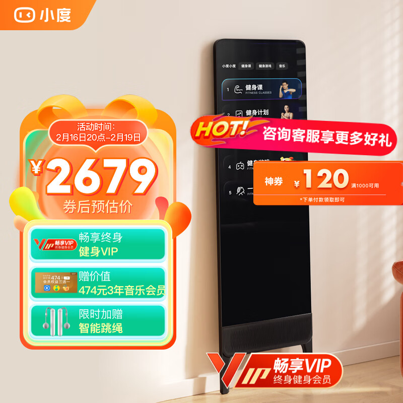 小度添添智能健身镜 S40畅享版 AI魔镜运动镜跳舞全身镜 居家减肥礼物价格:2799.00元!