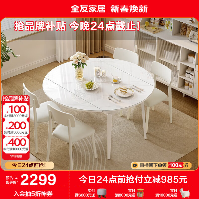 全友家居 现代简约可伸缩折叠圆餐桌椅组合餐厅家用吃饭桌子DW1210价格:3284.29元!