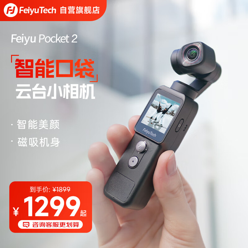 FeiyuTech飞宇Feiyu pocket2口袋相机手持云台4K高清增稳2代运动相机三轴防抖智能追踪广角vlog摄影机标配价格:1299.00元!