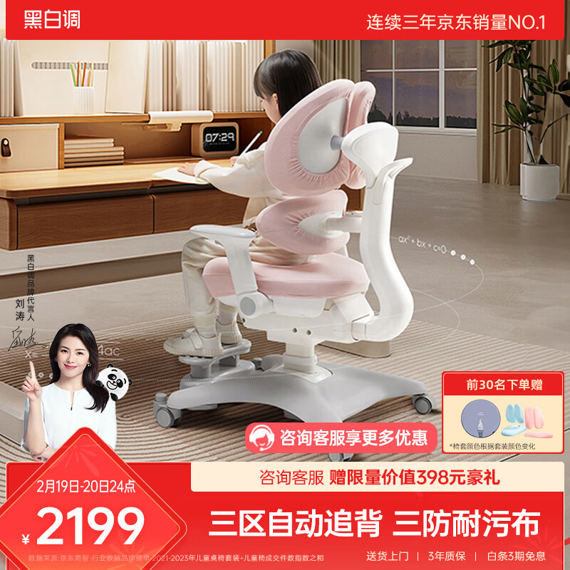 黑白调儿童G6Pro儿童学习椅学生座椅子矫姿写字椅升降久坐舒服餐桌椅价格:2199.00元!