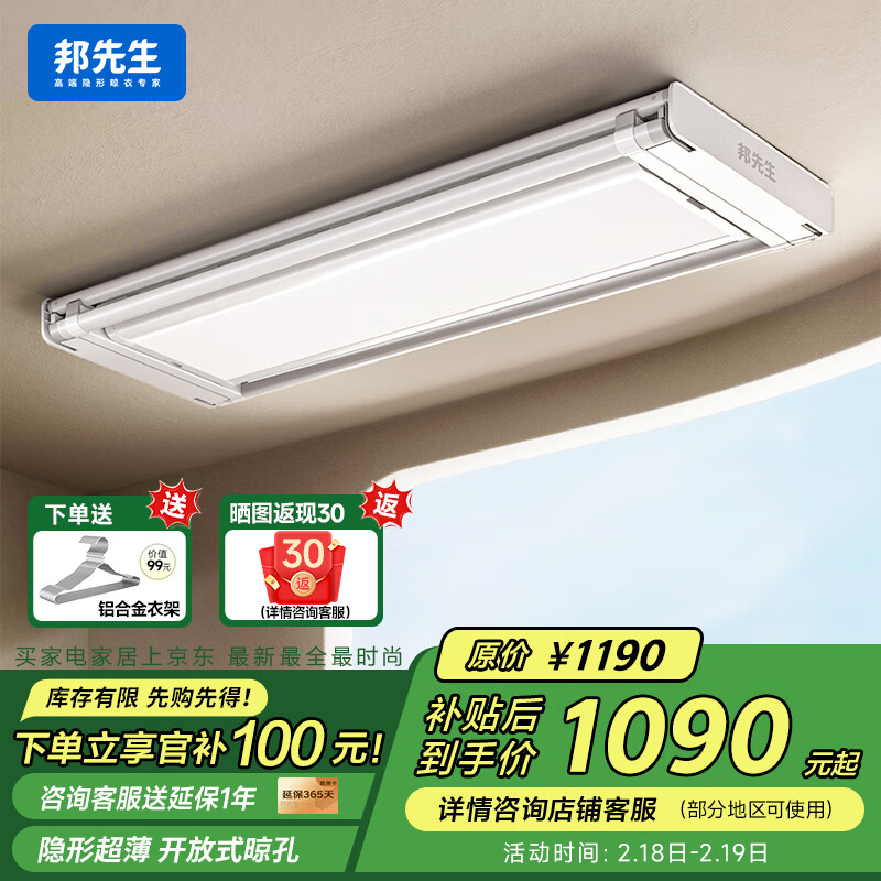 邦先生超薄隐形嵌入式智能电动晾衣架全自动升降晾衣机M22A价格:1190.00元!