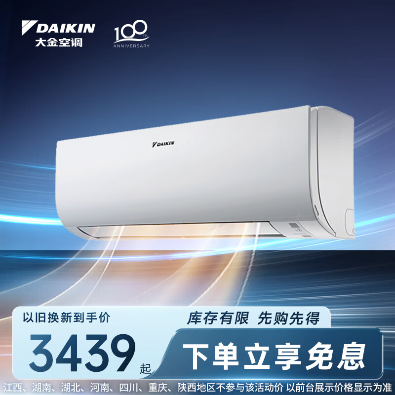 大金空调 大1.5匹 新三级能效 E-MAX5J系列 14-19㎡适用 变频 冷暖 家用 壁挂式 以旧换新 FTXJ336WC-W价格:3799.00元!