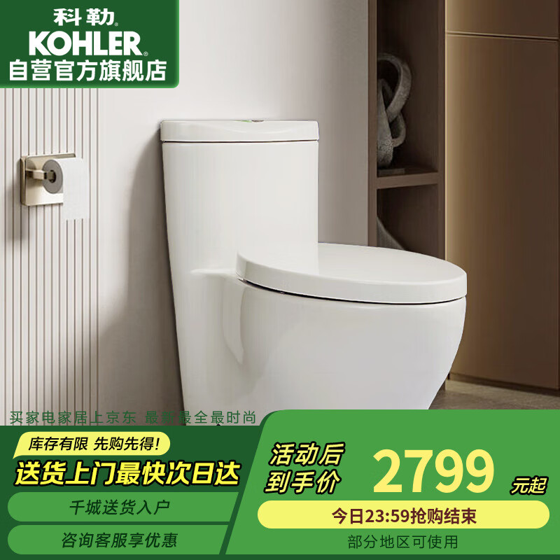 科勒(KOHLER)水漾连体抽水马桶坐便器1级水效喷射虹吸式节水大冲力400mm4165T价格:3299.00元!