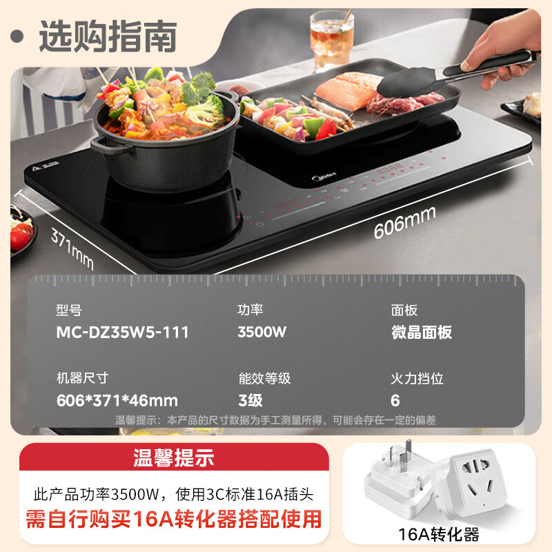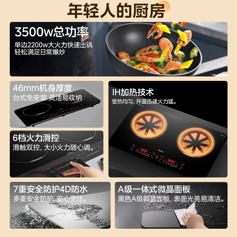 美的(Midea)双灶电磁炉电陶炉【补贴】电磁灶家用大功率3500W火锅炉 多功能轻薄机身定时预约DZ35W5-111价格:899.00元!