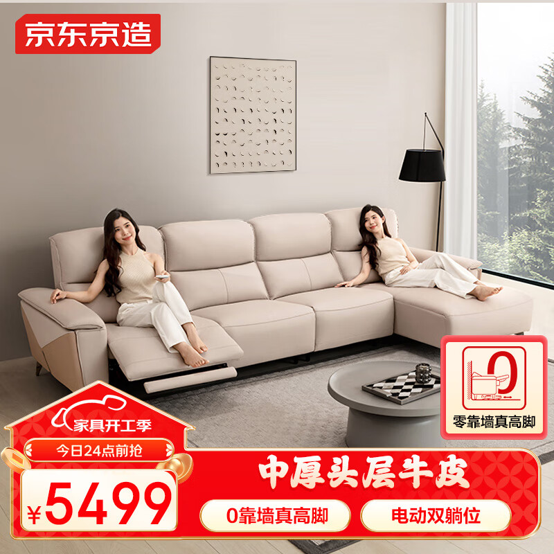 京东京造零靠墙格度2.0真皮电动沙发 头层牛皮客厅大户型3.05m右贵妃米白价格:5999.00元!
