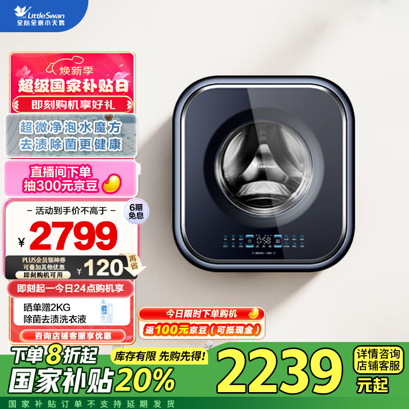 小天鹅(LittleSwan)内衣洗衣机全自动家用 婴儿洗衣机小型迷你 壁挂洗衣机 3公斤 超微净泡水魔方 除菌 TG30M80价格:2799.00元!