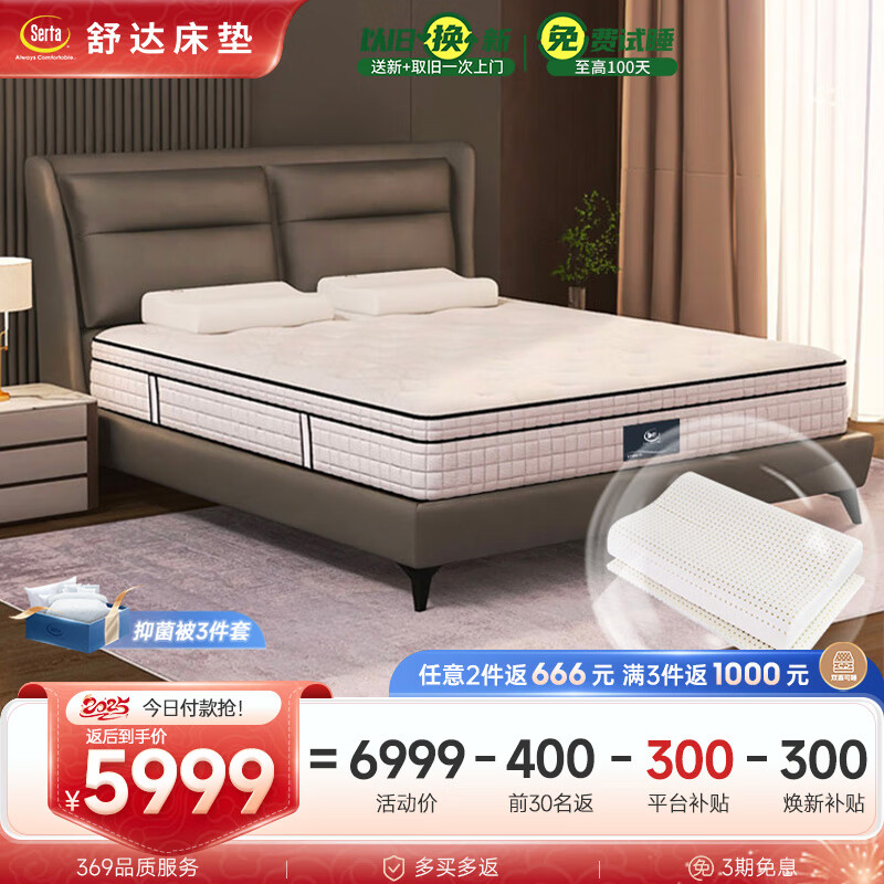 舒达(serta)舒达核心技术 乳胶床垫 双面睡感 致眠床垫 +特拉雷乳胶枕*2价格:6999.00元!