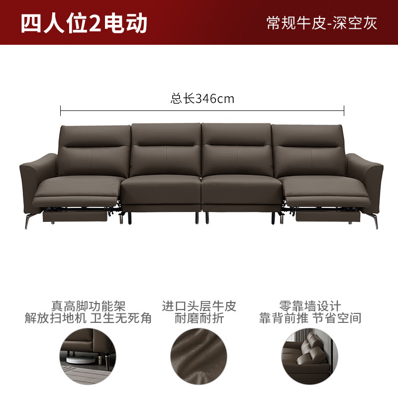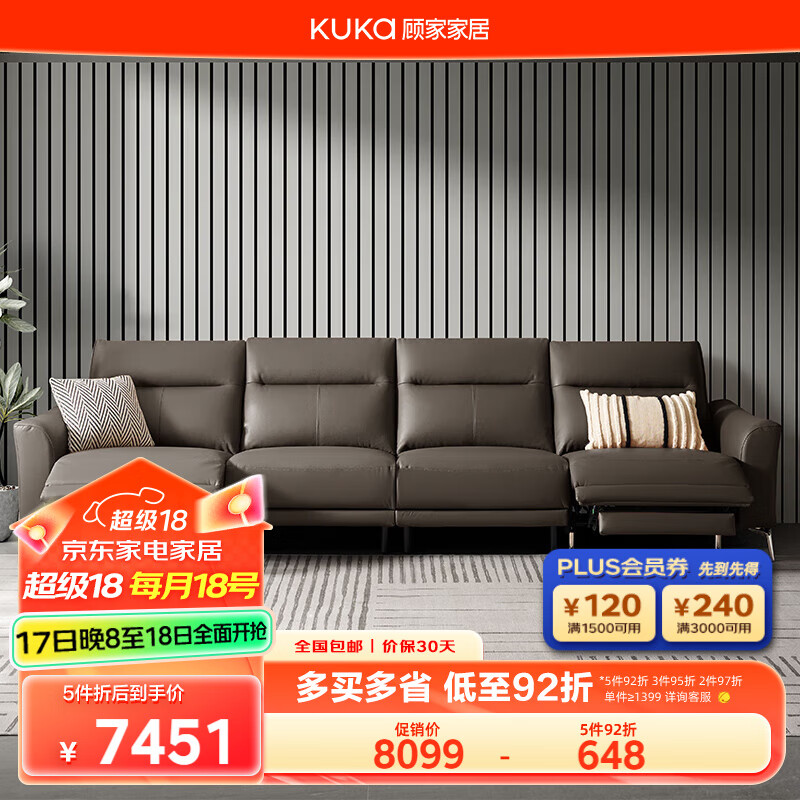 顾家家居(KUKA)简约零靠墙头层牛皮高脚电动功能沙发客厅6055E【灰】4人位2电动价格:8099.00元!