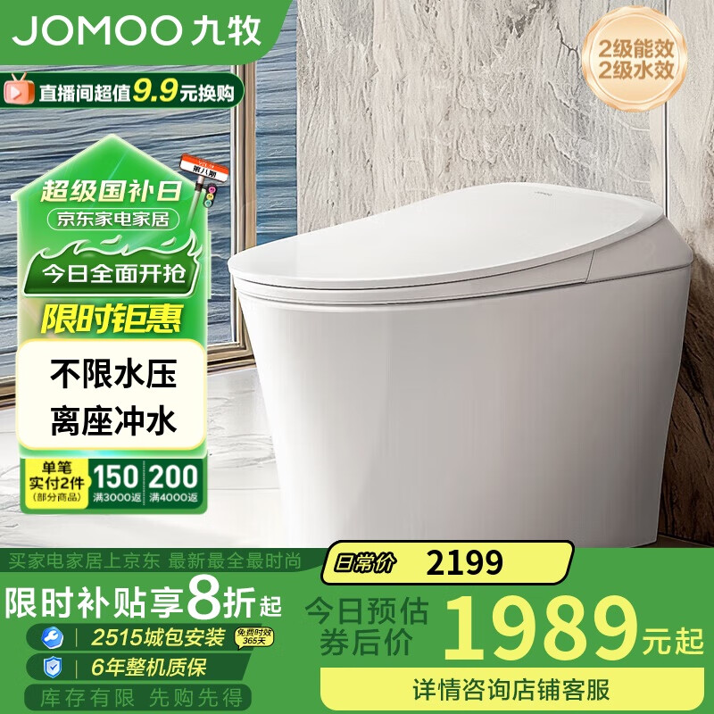 九牧(JOMOO)智能马桶带水箱不限水压智能大小冲智能坐便器ZS300P 400坑距价格:2177.00元!