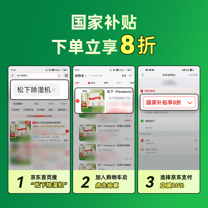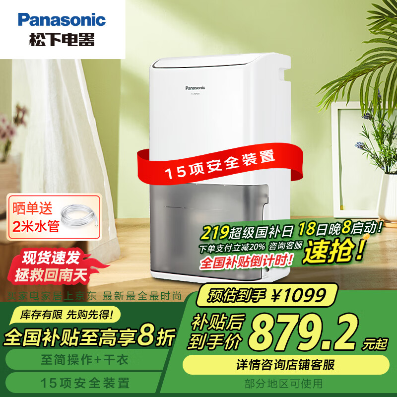 松下(Panasonic)除湿机/抽湿机 家用卧室办公室地下室轻音干衣吸湿器F-C16YCR价格:1099.00元!