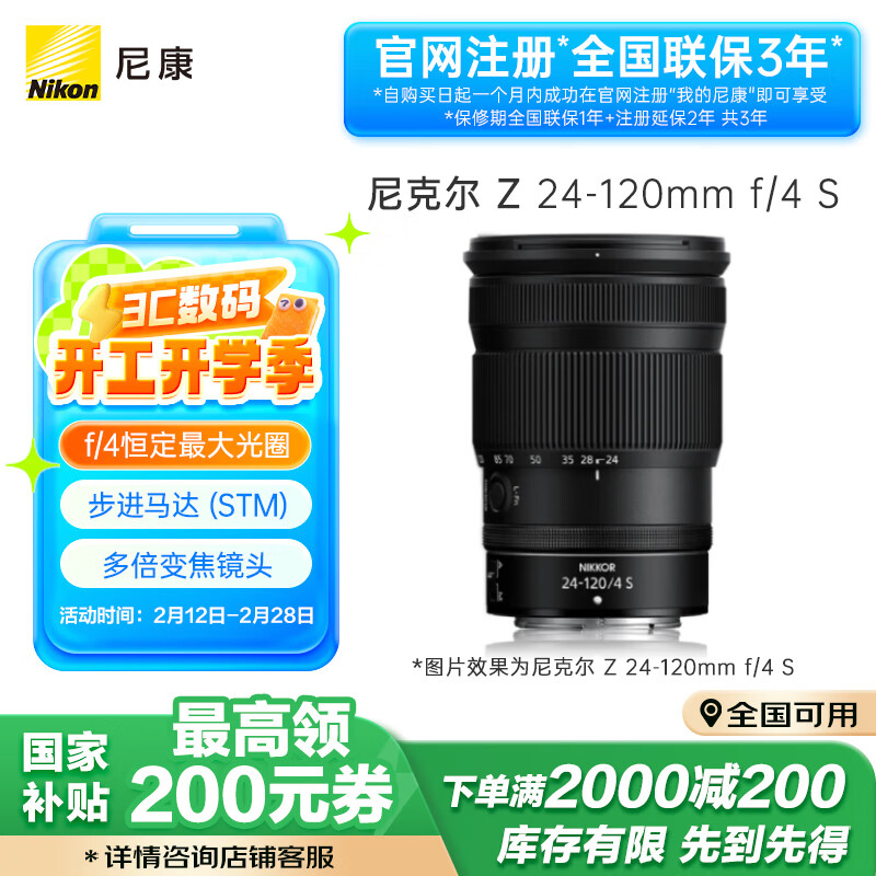 尼康(Nikon)尼克尔 Z 24-120mm f/4 S 全画幅 微单 多倍变焦镜头 尼康镜头 新闻/街拍价格:8999.00元!