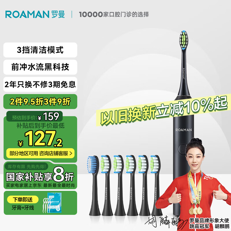 罗曼(ROAMAN)智能电动牙刷牙医推荐入门款3模式深层清洁送情侣男女朋友生节日新年礼物6刷头家电补贴T3黑色价格:189.00元!
