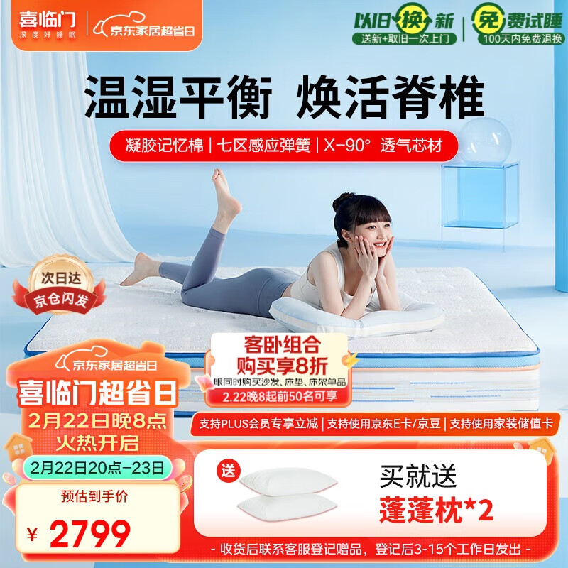喜临门羊毛棉凝胶记忆棉床垫 7区独袋弹簧透气芯材床垫 漾pro1.8x2米价格:2899.00元!
