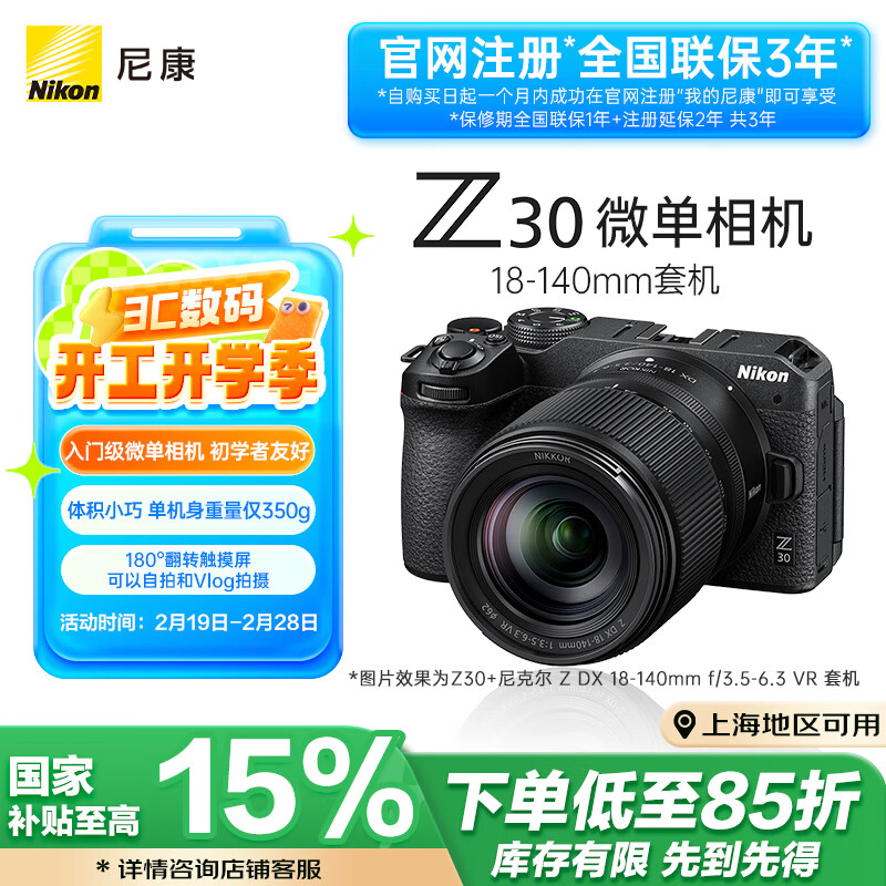 尼康(Nikon)Z30 Vlog视频 微单相机 无反相机 半画幅(Z DX 18-140mm f/3.5-6.3 VR)vlog视频相机价格:8599.00元!