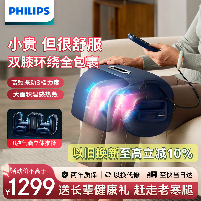 飞利浦(PHILIPS)膝盖按摩器多功能腿部按摩器护膝热敷保暖足疗机膝盖按摩仪 生日三八妇女节礼物送女友 7101L价格:1459.00元!