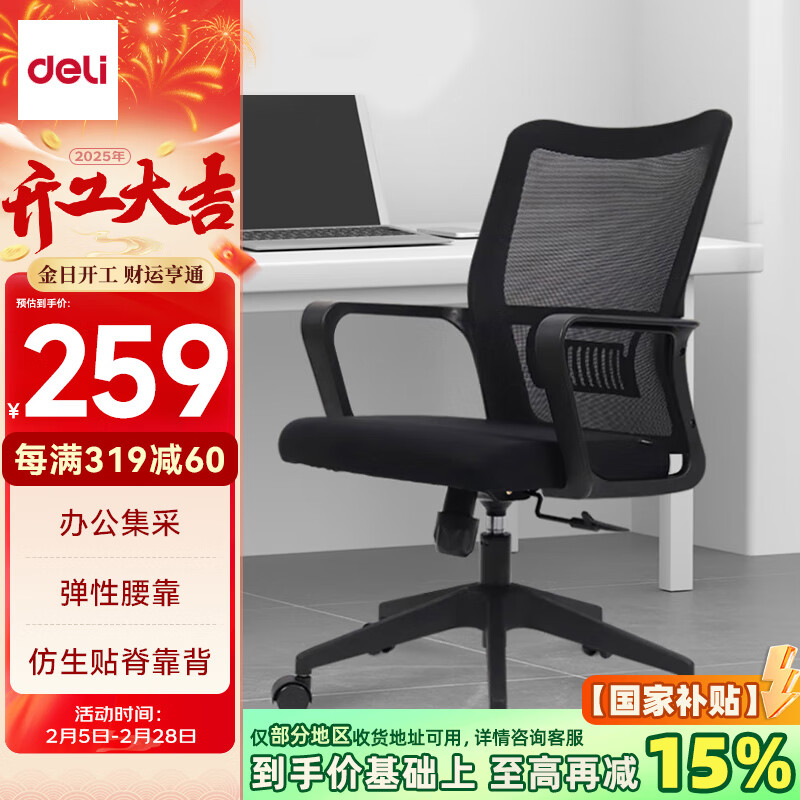 得力(deli)91103 简约时尚办公椅 人体工学电脑椅 居家书房座椅 经典黑价格:319.00元!