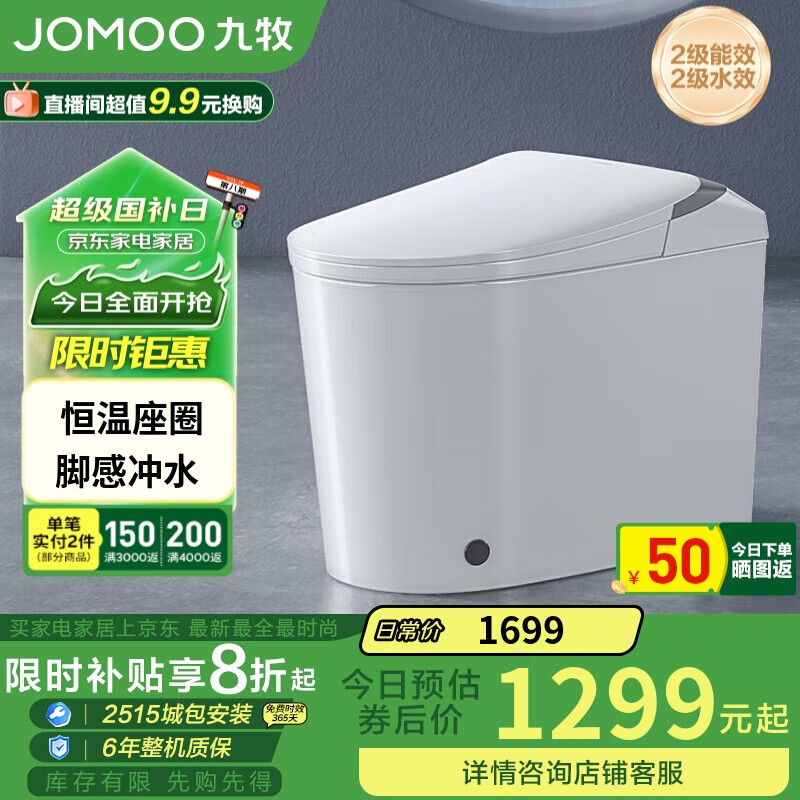 九牧(JOMOO)J11423-1-1/31K-1脚感冲水恒温座圈虹吸马桶坐便器305坑距价格:1359.00元!