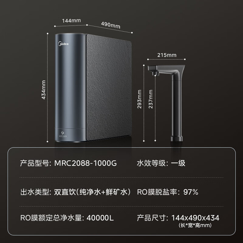 美的(Midea)家用净水机星河2.0净矿净水器双水直饮1000G5年RO反渗透矿物质厨下式净饮机2.72L/分pro升级款系列价格:2999.00元!