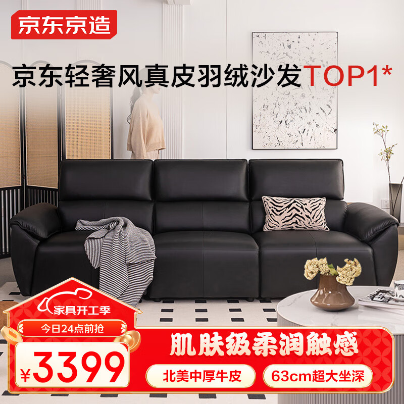 京东京造家居信封真皮沙发 轻奢客厅小户型头层牛皮钢琴键2.7m黑价格:3699.00元!