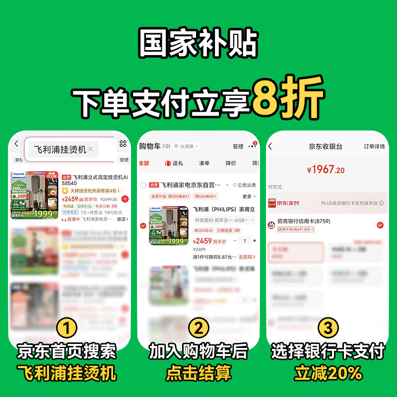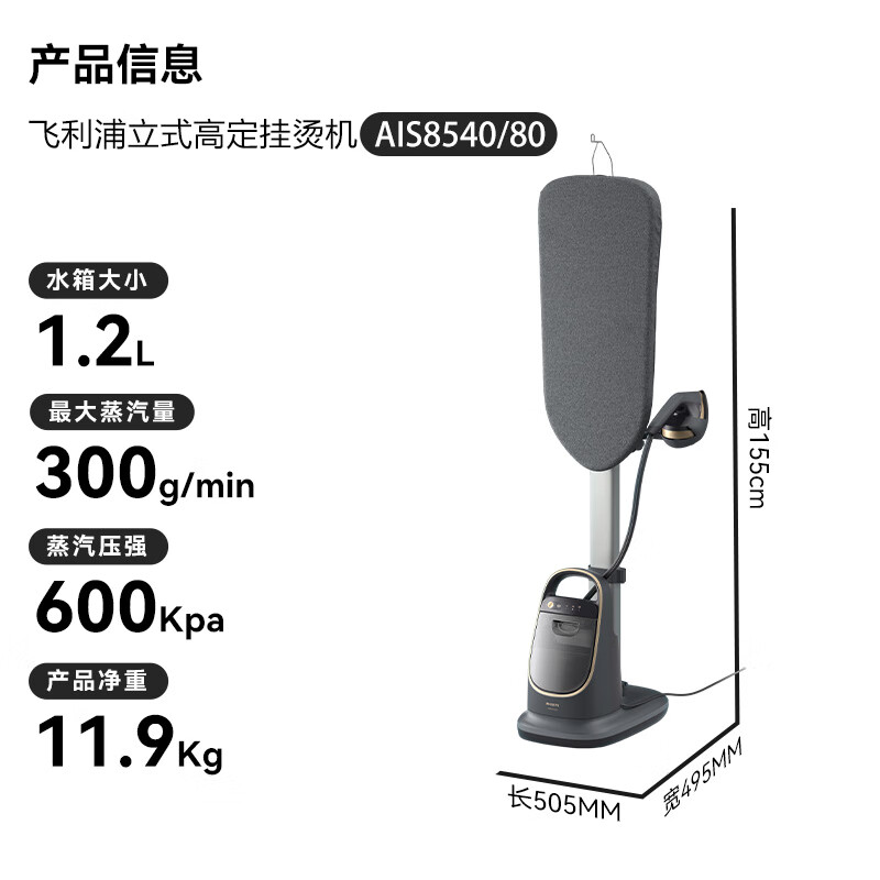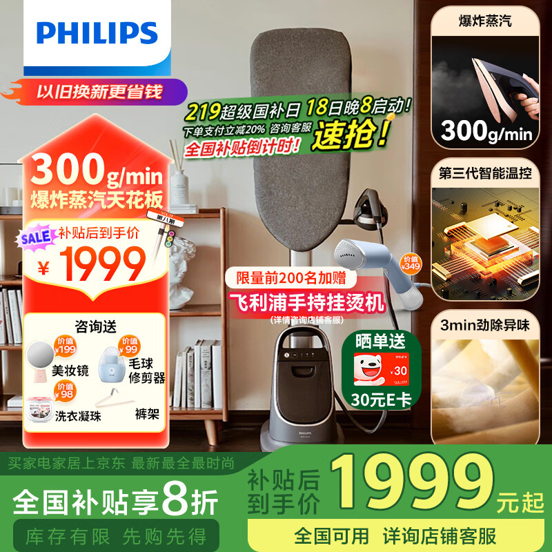 飞利浦(PHILIPS)【补贴8折】家用立式高定挂烫机多合一双重加热熨烫机增压蒸汽挂烫机电熨斗家用AIS8540/80价格:2499.00元!