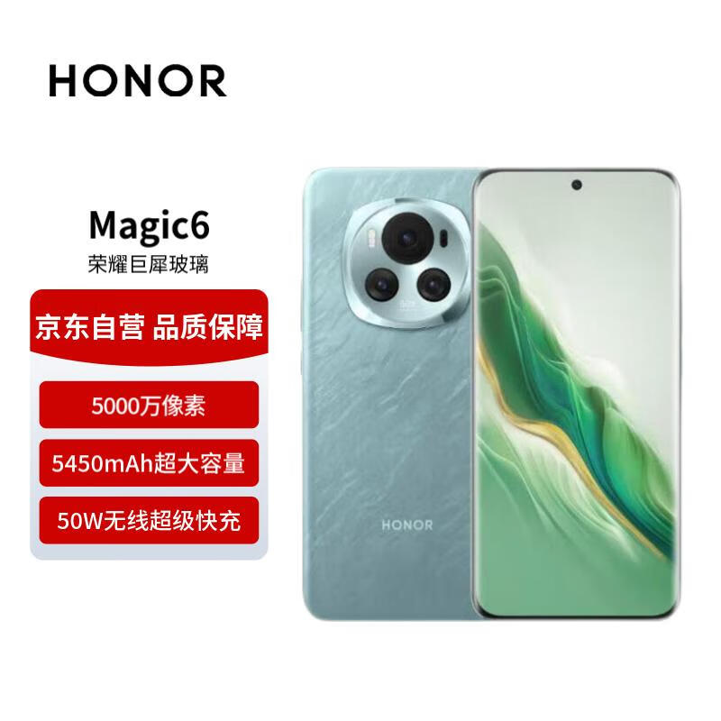 荣耀Magic6 单反级荣耀鹰眼相机 荣耀巨犀玻璃 第二代青海湖电池 16+256 海湖青 5G手机【赠话费券】价格:3499.00元!
