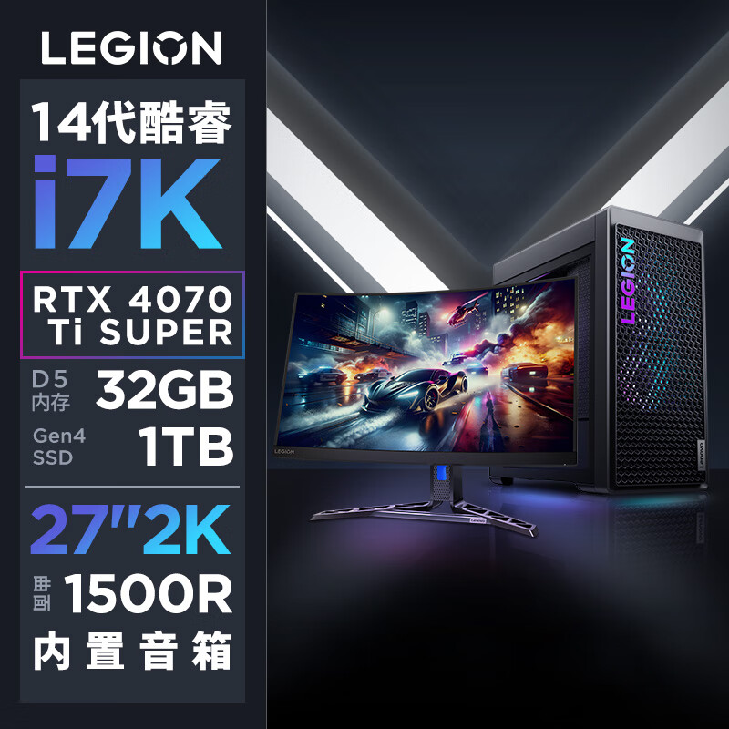 联想(Lenovo)拯救者刃7000K 2024游戏电脑主机(酷睿14代i7-14700KF RTX4070TiSuper 16GB显卡 32G DDR5)27英寸价格:16068.00元!