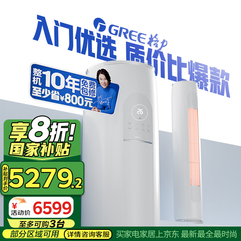 格力(GREE)3匹 天仪新1级能效变频 客厅空调立式柜机 格力空调KFR-72LW/(72504)FNhAa-B1 家电补贴价格:6599.00元!