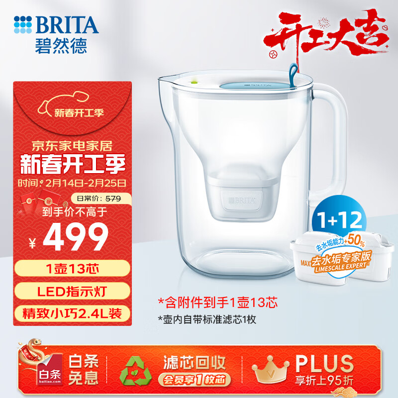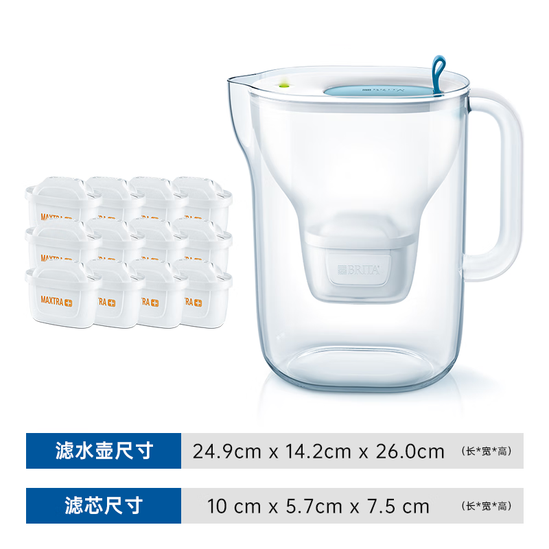 碧然德(BRITA)设计师滤水壶2.4L过滤净水器净水壶style Cool壶+去水垢专家版滤芯12枚(含组套)价格:499.00元!