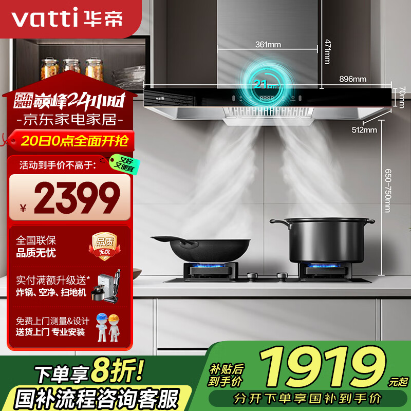 华帝(VATTI)抽油烟机家用排油烟机燃气灶烟灶套装欧式顶吸吸油烟机灶具套装一级能效 176液化气【套装商品】价格:2399.00元!