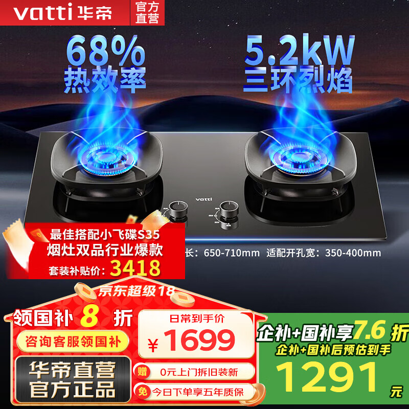 华帝(VATTI)政府补贴20%燃气灶 小飞碟/翼家用燃气灶官方i10309 台嵌两用5.2kw三环火力聚能盘68%高热效率可拆 【热卖款】68%热效率i10309 液化气5.0kW价格:1699.00元!