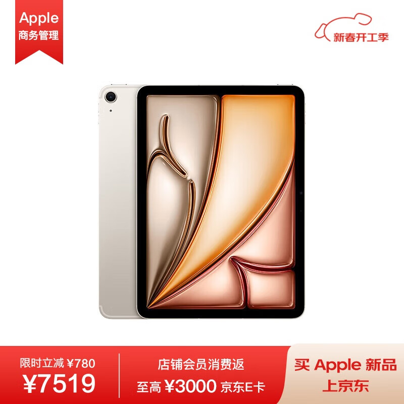 Apple iPad Air 11 英寸 M2芯片 2024年新款平板电脑512GB 蜂窝版/MUY83CH/A 星光色*企业专享价格:8299.00元!